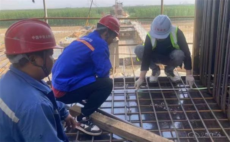 濱州樂安黃河公路大橋及接線工程主橋19#墩 0#塊鋼筋綁扎現(xiàn)場(chǎng),監(jiān)理人員正巡視檢查預(yù)應(yīng)力管道錨墊板位置、鋼筋綁扎位置。監(jiān)理人員積極響應(yīng)“大干300天,奉獻(xiàn)在樂安” 勞動(dòng)競(jìng)賽暨黨建共建活動(dòng)號(hào)召,秉持“嚴(yán)格監(jiān)理、優(yōu)質(zhì)服務(wù),科學(xué)公正、廉潔自律”工作理念,堅(jiān)守安全、質(zhì)量、廉政底線,不斷提升精細(xì)化管理水平,為項(xiàng)目建設(shè)保駕護(hù)航。